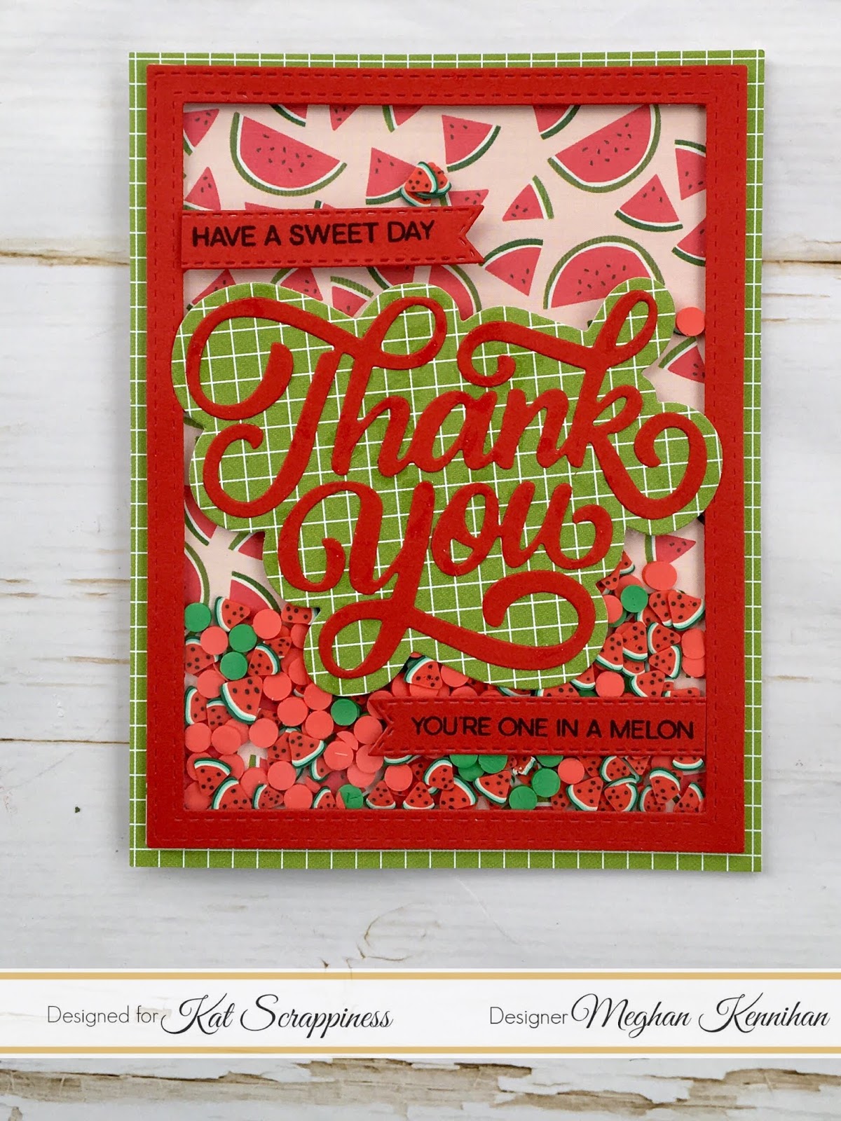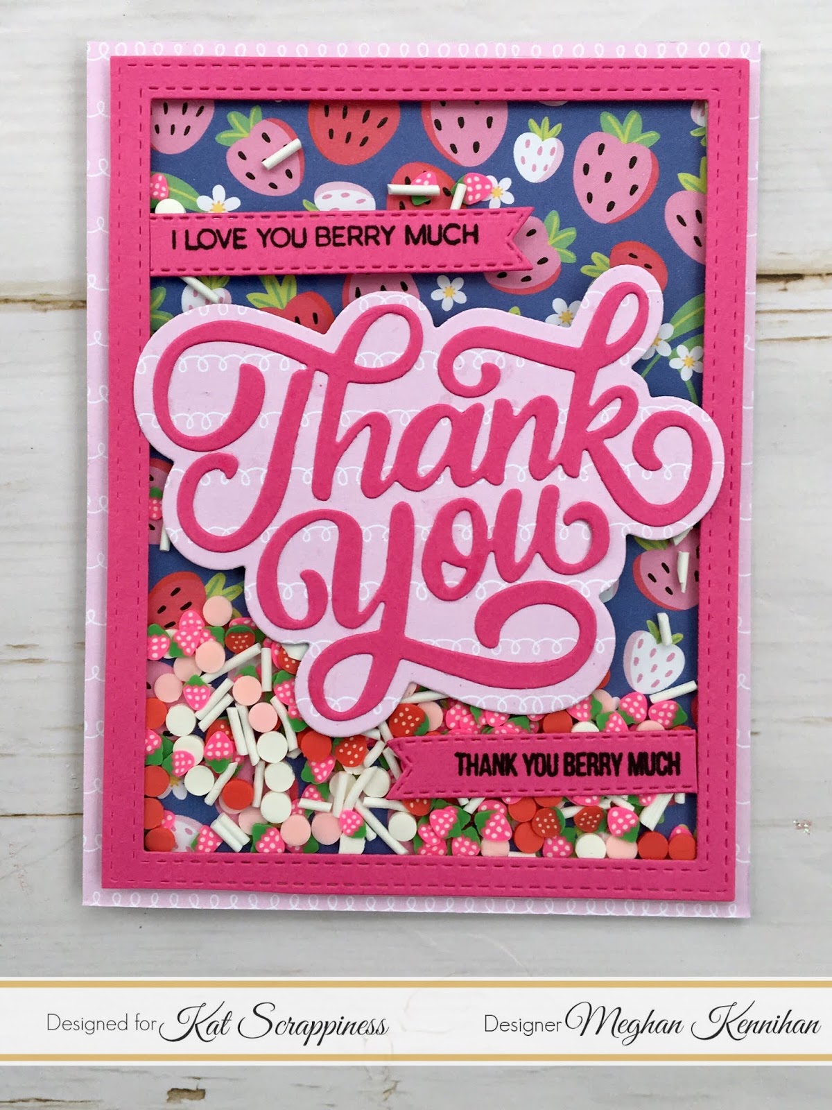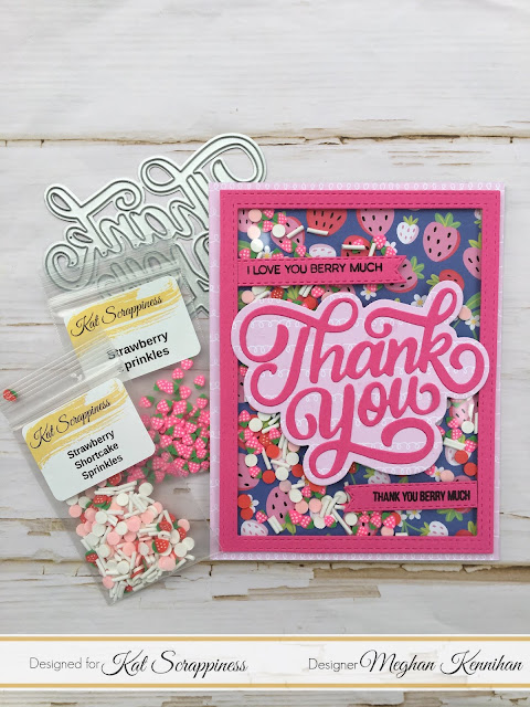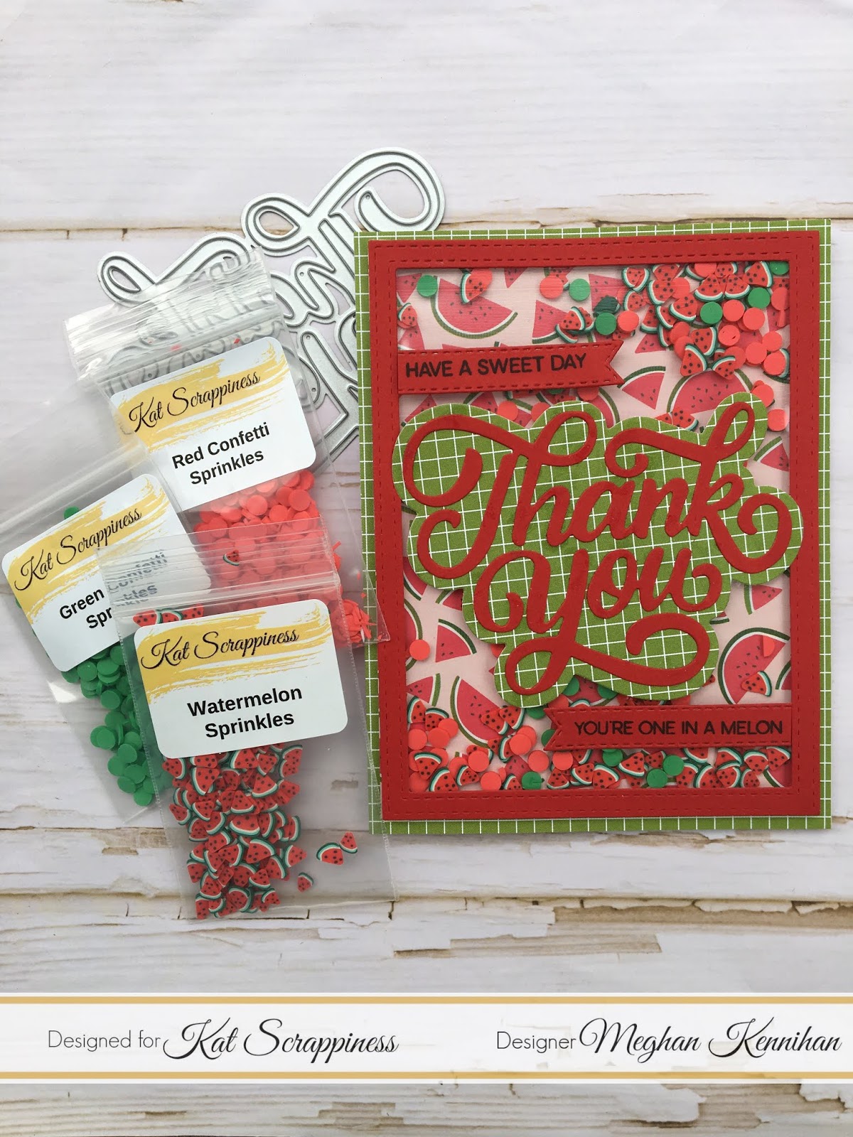 Have you seen the NEW THANK YOU Die with Shadow Dies from Kat Scrappiness? They are a beautiful script and such an easy way to create precious cards of gratitude. I made two shaker cards featuring the THANK YOU with Shadow Die and the NEW sprinkles in the Kat Scrappiness Store. There are SOOOOOO many cute sprinkles, make sure you head to the store and check them out!