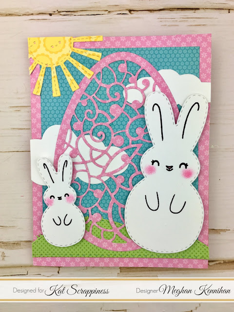 Have you seen the amazing dies in the Easter/Spring Release at Kat Scrappiness! There are so many darling dies and I think I used them all on this one card!