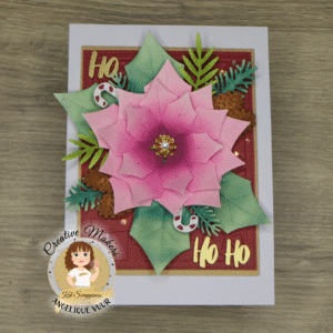 From the Merry Christmas Chipboard Embellishments, I chose “HO HO HO” and colored it with a gold marker to match the Poinsettia hearts.