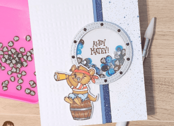 I have a cute shaker card for Kat Scrappiness’s newest release of Pirate themed stamps, dies, and pattern paper. Here…