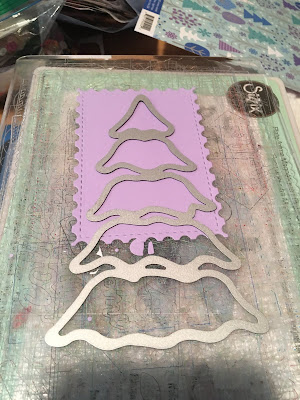 Next I die cut the tree out of purple cardstock that matches my base using the Kat Scrappiness Stitched & Layered Christmas Tree Die.