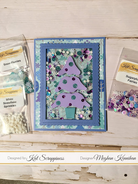 Have you been playing along with any Christmas in July challenges or projects? If you have, I have got a fun post for you today to inspire your Christmasy creations! I made two shaker cards using the wonderful dies, sequins, and sprinkles at Kat Scrappiness! This is the first and I want you to come back on the 21st for the second! Also, head to my blog for a GIVEAWAY!