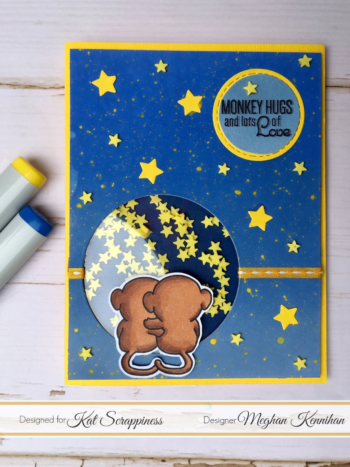 I added the yellow ribbon, die cut stars, and star sprinkles in the sky. Then finished my cards with the cute monkeys watching the stars together and the sentiment.