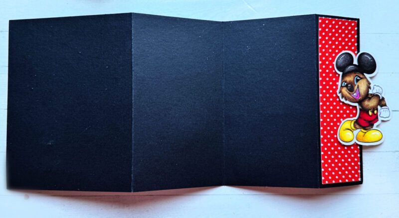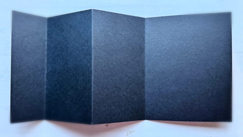 - Cut a piece of 12×12 black cardstock to create a 12″ x 5 1/2″ card base and then scored it at 1 3/4″, 4 3/4″ and 7 3/4″.