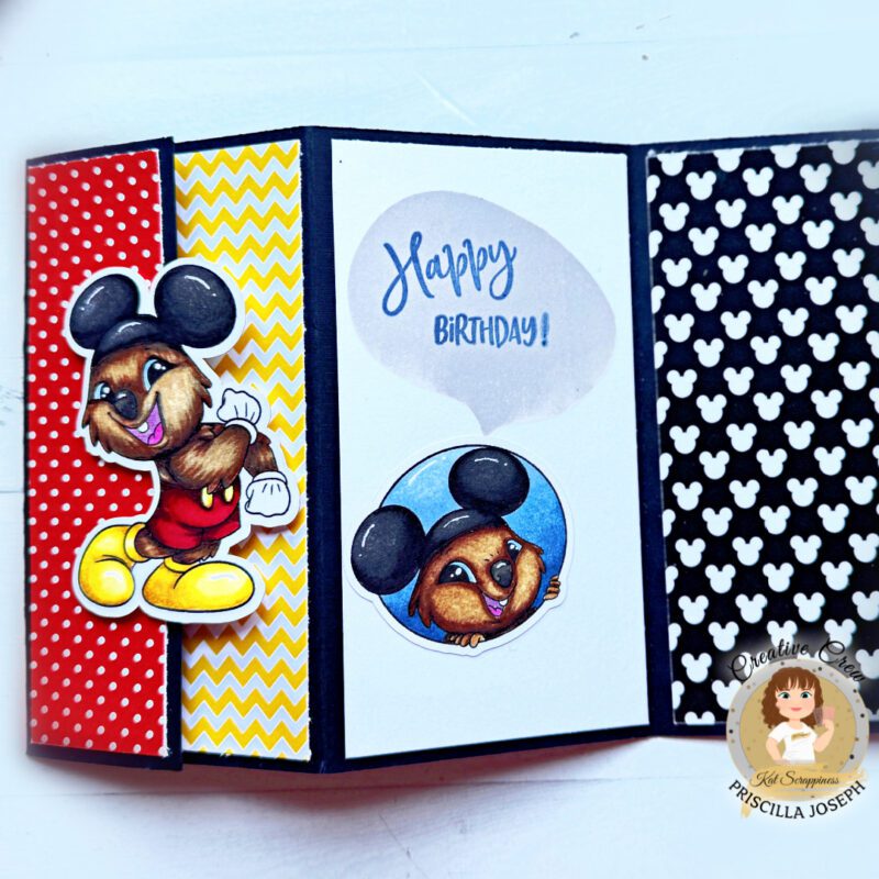 Hello Crafty Friends! Priscilla here from Nubble Light Designs. Today I am sharing how I made a “Multi-Fold Fun Fold” birthday card using the new Kat Scrappiness “Meet the Quouses Die Cut Ephemera” and “Magical Memories” paper pad. Inside this folded card, you’ll find “Quickey the Quokka” wishing you a “Happy Birthday” using the Kat Scrappiness “Happy Day” stamp set.