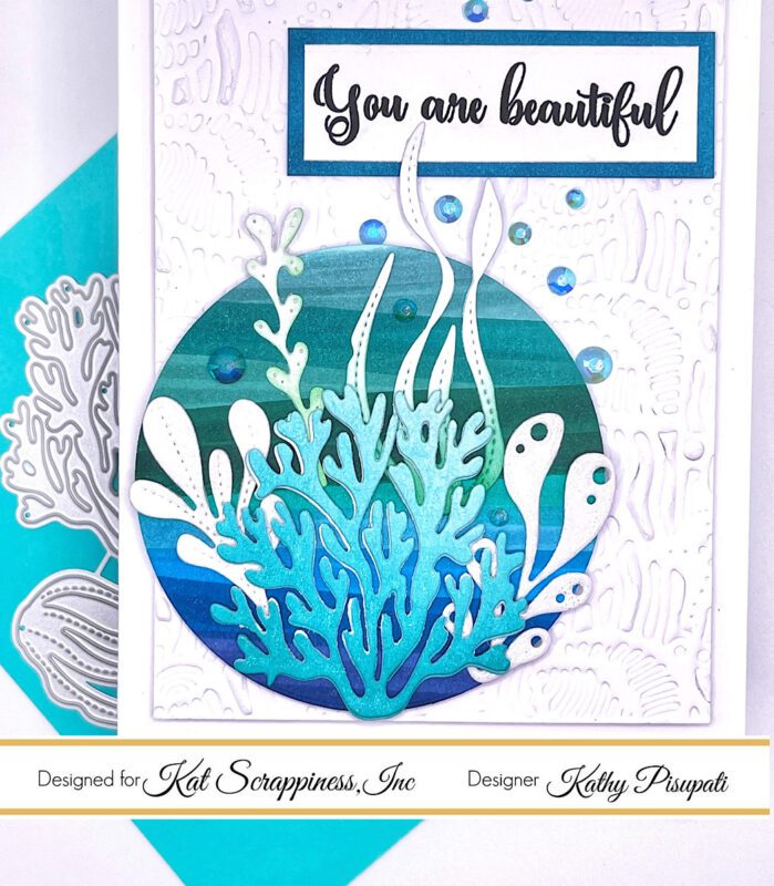Good Morning! I am up on the Kat Scrappiness Blog today with a new card featuring the new Under the Sea dies. There is a beautiful new cover plate and a set of amazing ocean plant dies. They can be used for any occasion and are bound to be hit in your craft room! So let’s make a card!