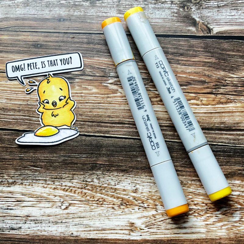 - Stamped and die cut the chick image from the Easter Fun stamp set and colored it with Copic markers.