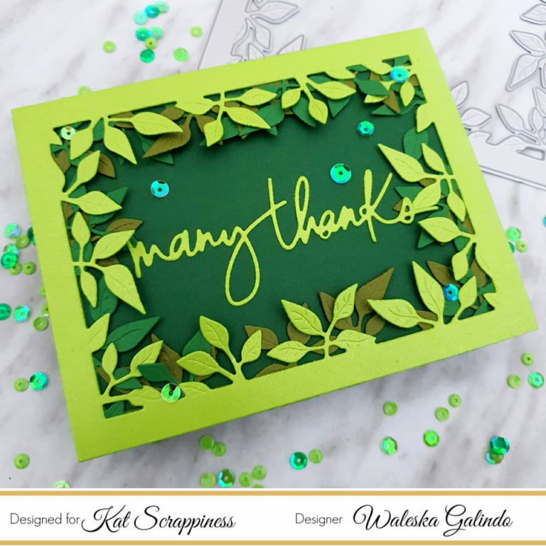 Hello Friends Waleska here to share an easy and super dimentional card using only one die!!! To create this card I used the Foliage Frame Die, one of my favorite from Kat Scrappiness.