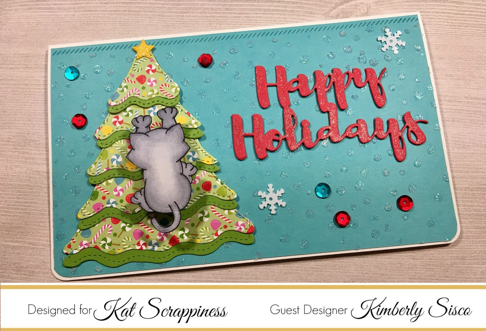 Hello Crafters! Kimberly here and it is my pleasure to be a Guest Designer for Kat Scrappiness. Today I am sharing a Christmas card which features the Stitched & Layered Christmas Tree Die by Kat Scrappiness; along with some wonderful products from her store.