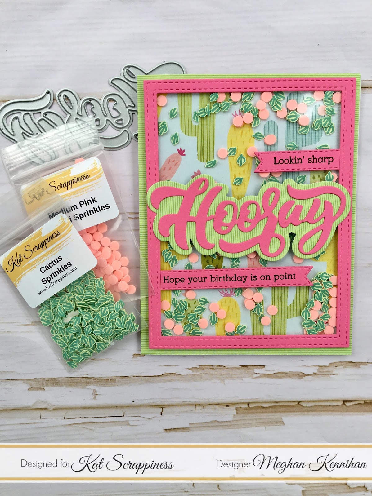 Have you seen the NEW HOORAY with Shadow Dies from Kat Scrappiness? They are perfect for your Graduation and Birthday cards! Actually, they are perfect for ANY CELEBRATION! I made two shaker cards featuring the HOORAY with Shadow Die and the NEW sprinkles in the Kat Scrappiness Store. There are SOOOOOO many cute ones these are just the tip of the iceberg.