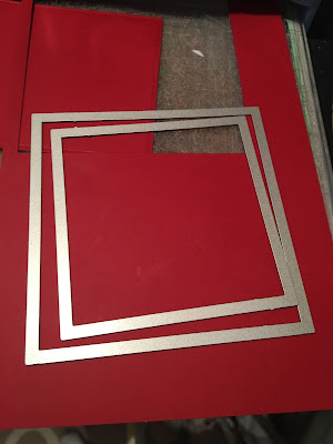 I started by die cutting the frame using Kat Scrappiness Embossed Edges Square die out of red cardstock.
