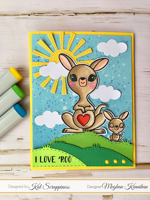 Have you gotten your hands on this ADORABLE Kangaroo set, HOPPY FOR YOU yet? NO? What are you waiting for? YES? Let’s see what you made! Show us on the Kat Scrappiness Facebook Fan Page or tag us on Instagram #katscrappiness! I made two cards for you with this cutie!