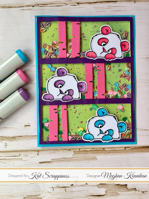 I am sharing one of my FAVORITE stamp sets of all time, along with the cutest sprinkles ever! This is Lovely Panda by Gerda Steiner Designs. You can find this cutie in the Kat Scrappiness store here. He is DARLING. I created a a bright colored scene for these pandas to match the Mystical Leaves Sprinkles. They are such fun colors!