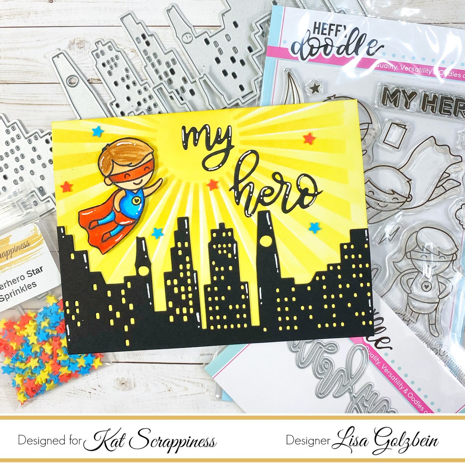 For a final touch I added some very appropriate Kat Scrappiness Superhero Sprinkles to my card!