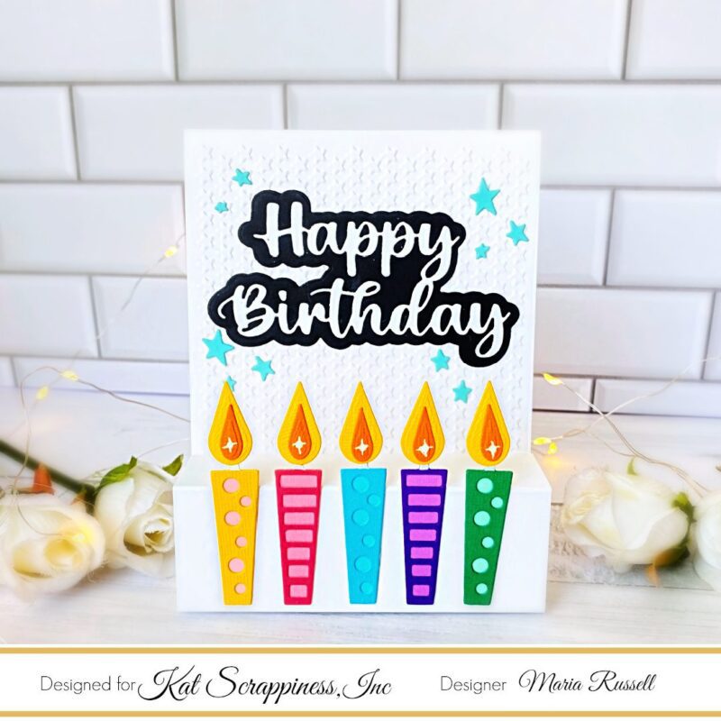 - Die-cut the candles from the Birthday Essentials die set on different color of card stock.