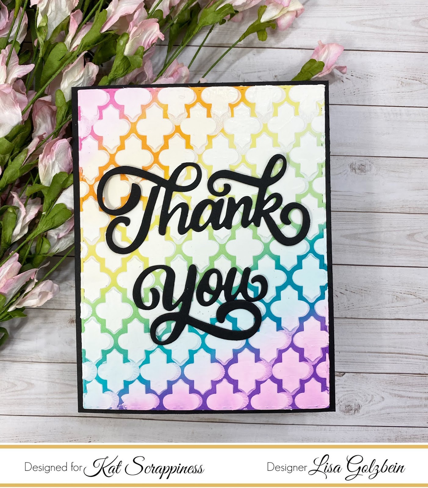 I am really in love with these dies because you can make an entire card with just the dies. For this card I just made a really cool rainbow background and the cut the Thank You out of black paper minus the shadow layer and placed it on top. I think it makes a great card and it comes together super quickly!