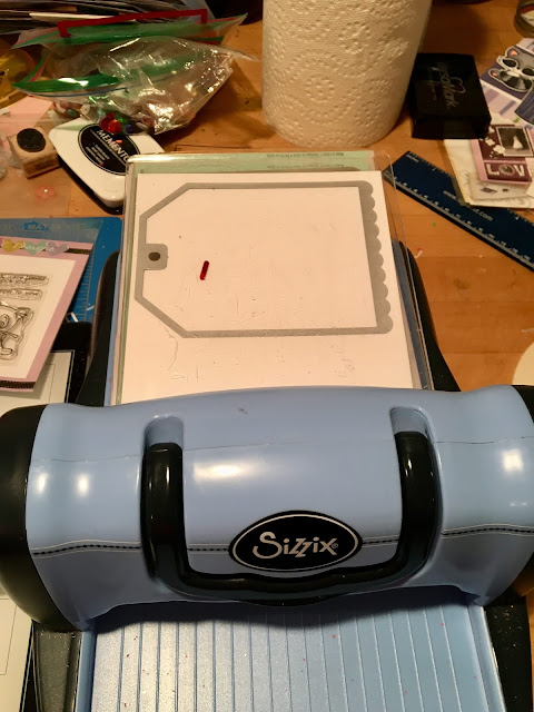 I started by die cutting four of the Kat Scrappiness Stitched Scalloped Nesting Tag Dies out of Neenah 110lb White. Then I die cute four Stitched & Layered Snowmen out of the same paper.