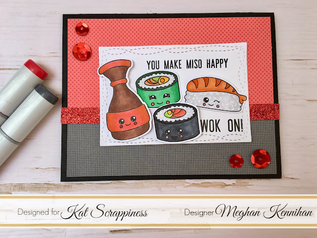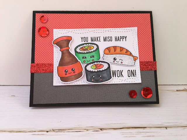 I am sharing some SUSHI LOVE with you today! I love this Sushi stamp set from Kat Scrappiness, it’s darling and has some great pun sentiments.