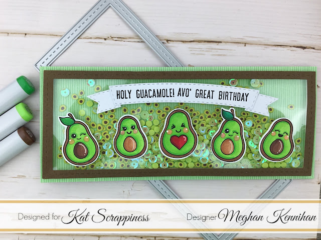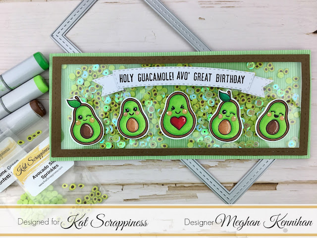 Are you ready for another fabulous challenge at Kat Scrappiness? This month is MY BIRTHDAY (August 25th) and since I’m in charge of the Challenge that means the theme is BIRTHDAY. My inspiration for you is this fun slimline avocado themed birthday shaker card because I LOVE avocados! I eat one everyday.