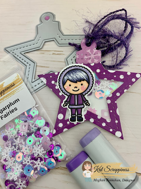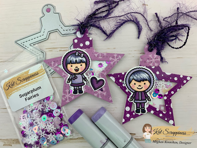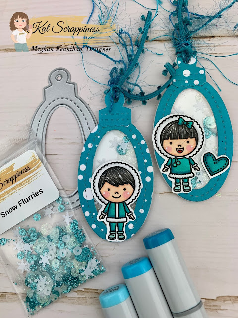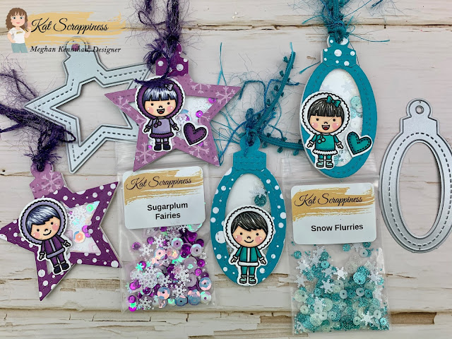 I have some shaker tags to share with you today as inspiration for the Kat Scrappiness December Challenge: Holiday Tags or Ornaments. These Kat Scrappiness Shaker Ornament Dies are perfect for making tags for your gifts or ornaments for your tree!
