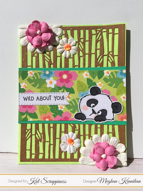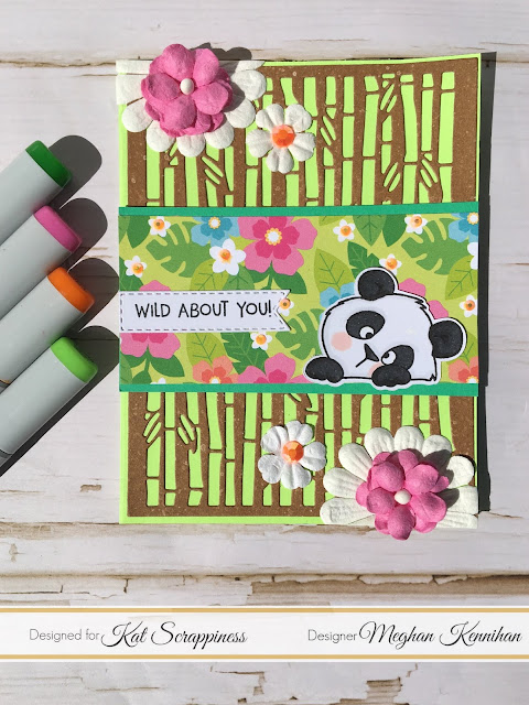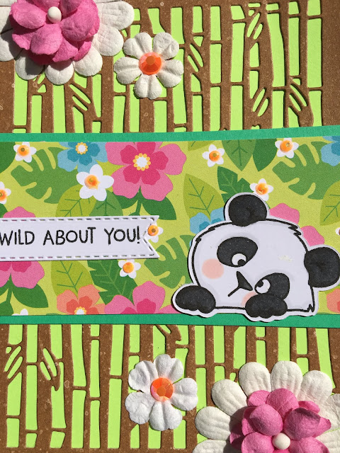 I cut my sentiment out using the Kat Scrappiness Stitched Fishtail Banner Dies and added the little panda to my tropical flower strip.