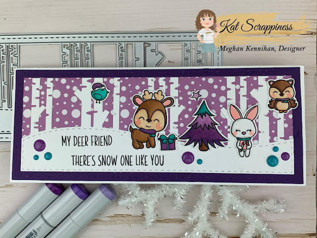 I have a slimline card to inspire you to join the Kat Scrappiness “Give Thanks” November Challenge. I used the darling Thanksgiving Gnomes Stamp set and the Tri-Frame Slimline Dies.