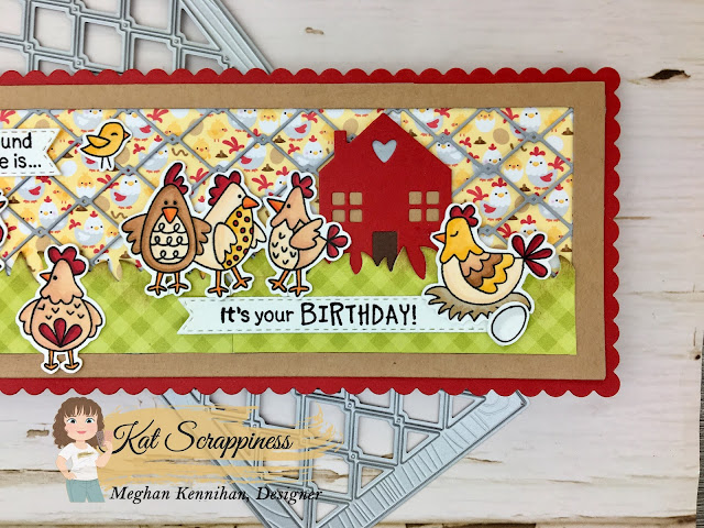 Have you seen the amazing new slimline dies from Kat Scrappiness? I am showing off the Diamond Wire Slimline Die with a darling little chicken scene of course!