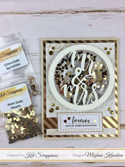 Are you ready for Wedding Season? It’s coming soon. According to all the wedding websites April-June are always in the top 5 for wedding months. I’m sharing an amazing shaker card using Kat Scrappiness fun Mr & Mrs Shaker kit.