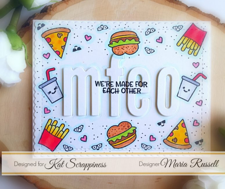 Hello Kat Scrappiness fans! I hope you are all having a great week so far. Maria back on the blog today sharing with you this cute card, featuring the Punny Snacks stamp set, the Condensed Lower Case Alpha Dies and the new Stitched Scalloped Rectangle Dies. I love the new scalloped dies so much.