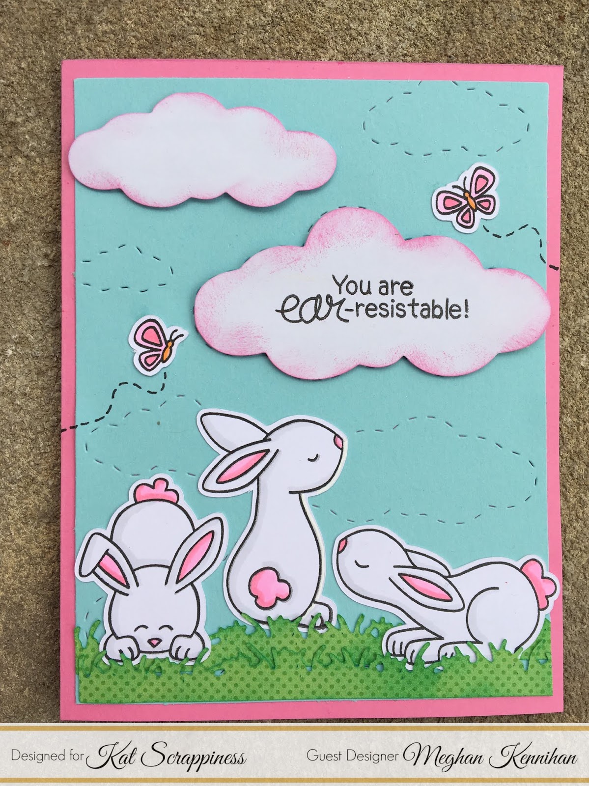 I finished the scene by adding the darling little bunnies, the butterfly and that sweet pun sentiment!
